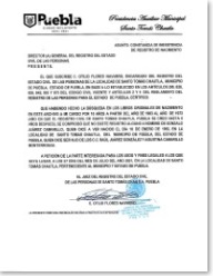 Constancia de No Registro / Inexistencia en Puebla y Tlaxcala
