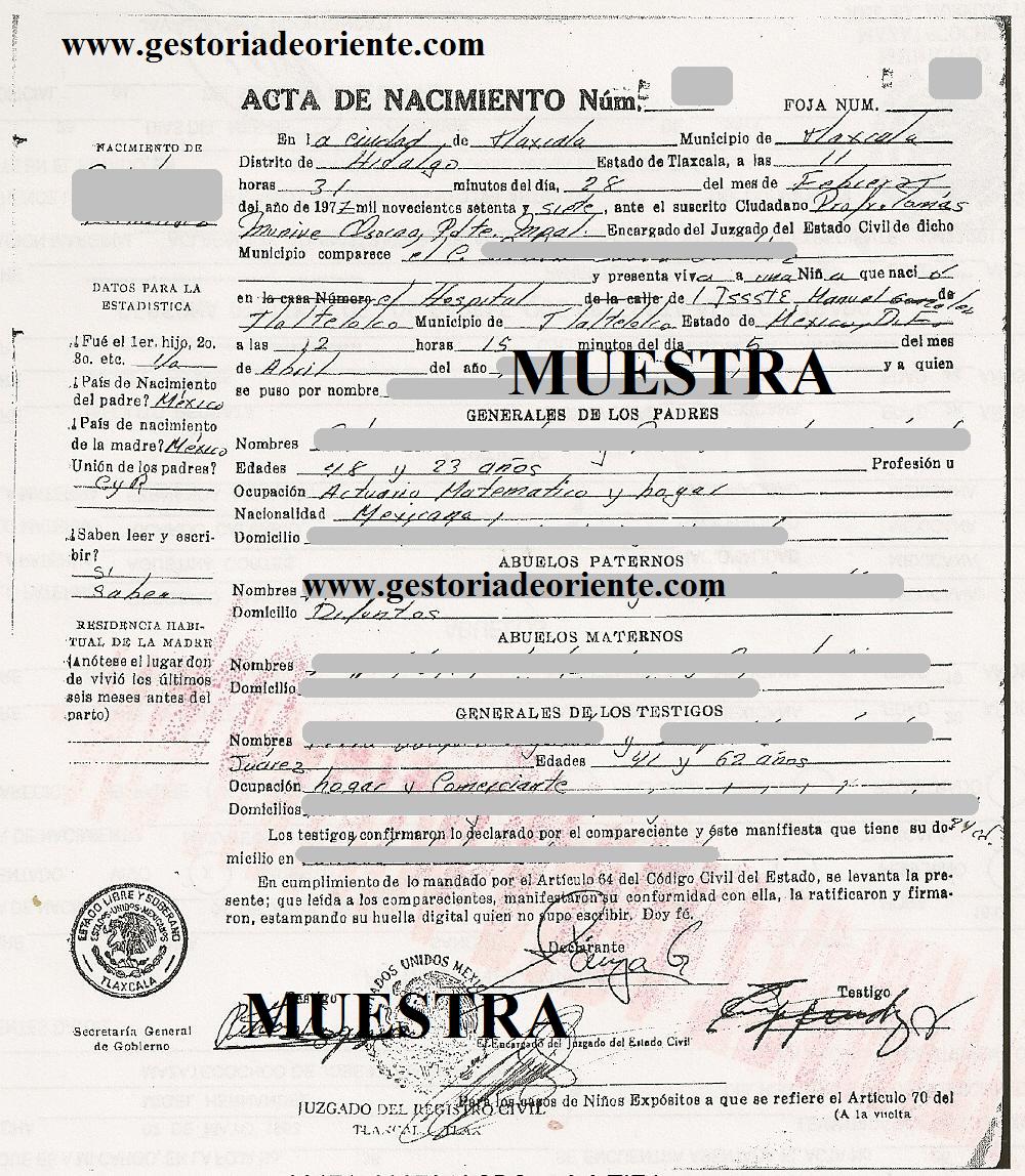 En Tlaxcala, existen dos formatos, (1) el extracto, o (2) la transcripción, la mayoría de actas ya se encuentra en sistema como extracto y se envían de 24 a 48 hrs, las transcripciones se enviarán de 3 a 4 días; a menos que solicite expresamente, si su acta esta disponible en extracto se tramitará así.